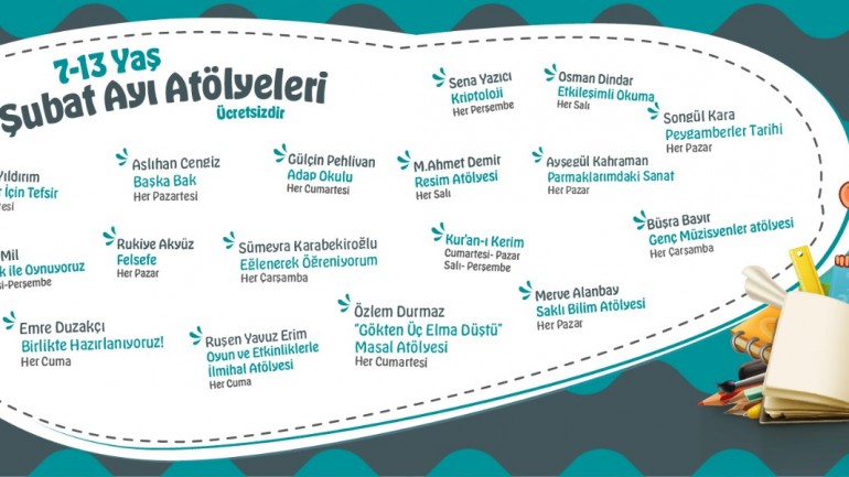 Mavera Akademi Şubat Ayı Atölyeleri Mavera Akademi olarak 7-13 yaş aralığındaki çocuklar için düzenlediğimiz atölyelerimizin ŞUBAT ayı kayıtları bugün başlıyor!... Devamını oku